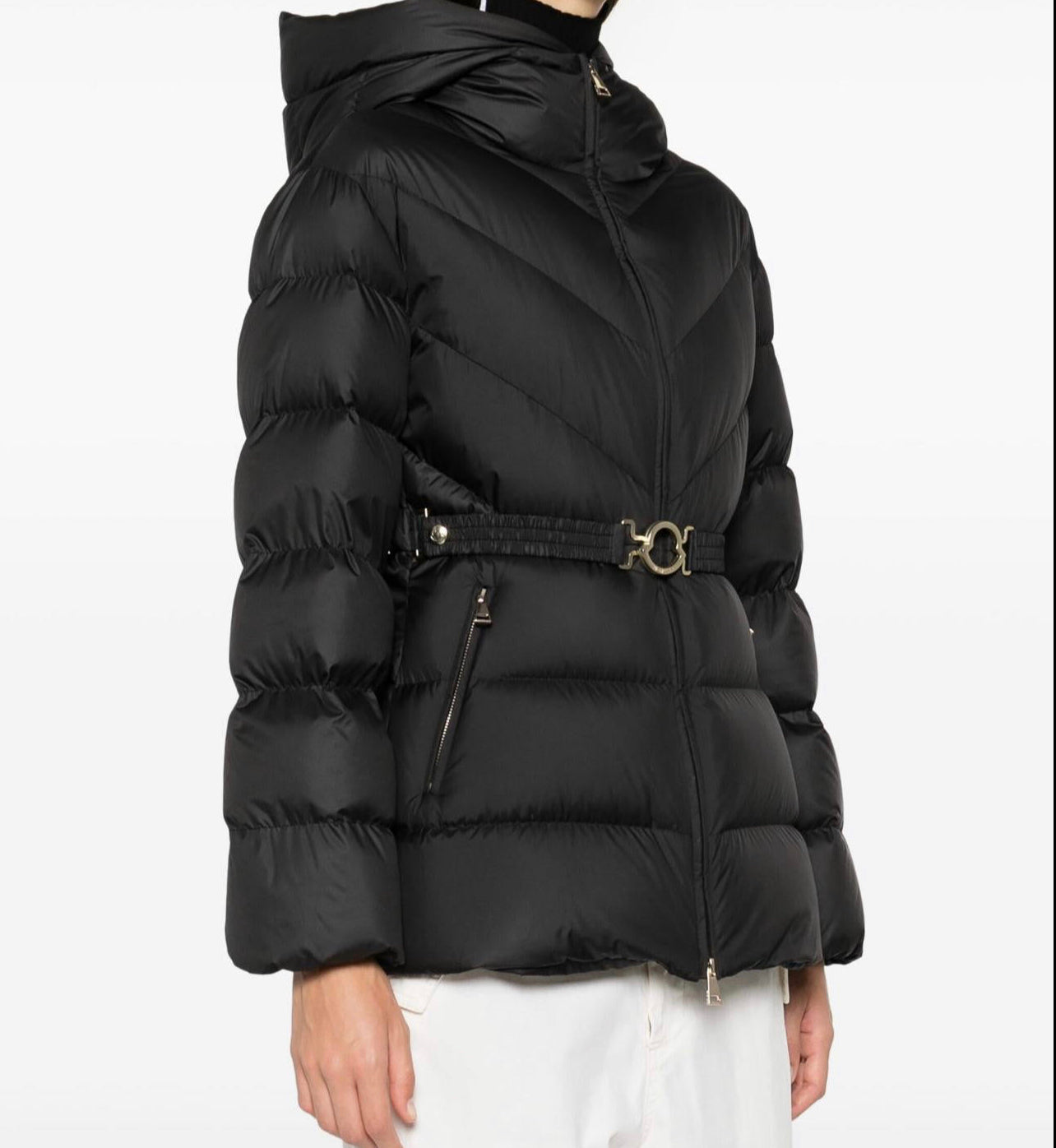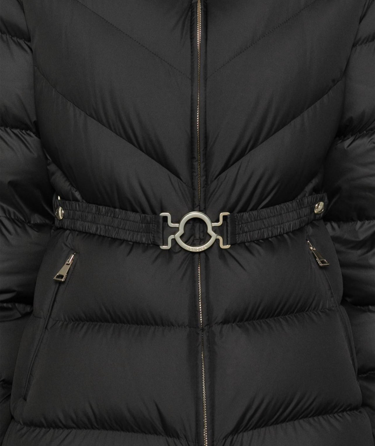 GIUBBOTTO MONCLER DONNA CORTO NERO OPACO CON CINTA
